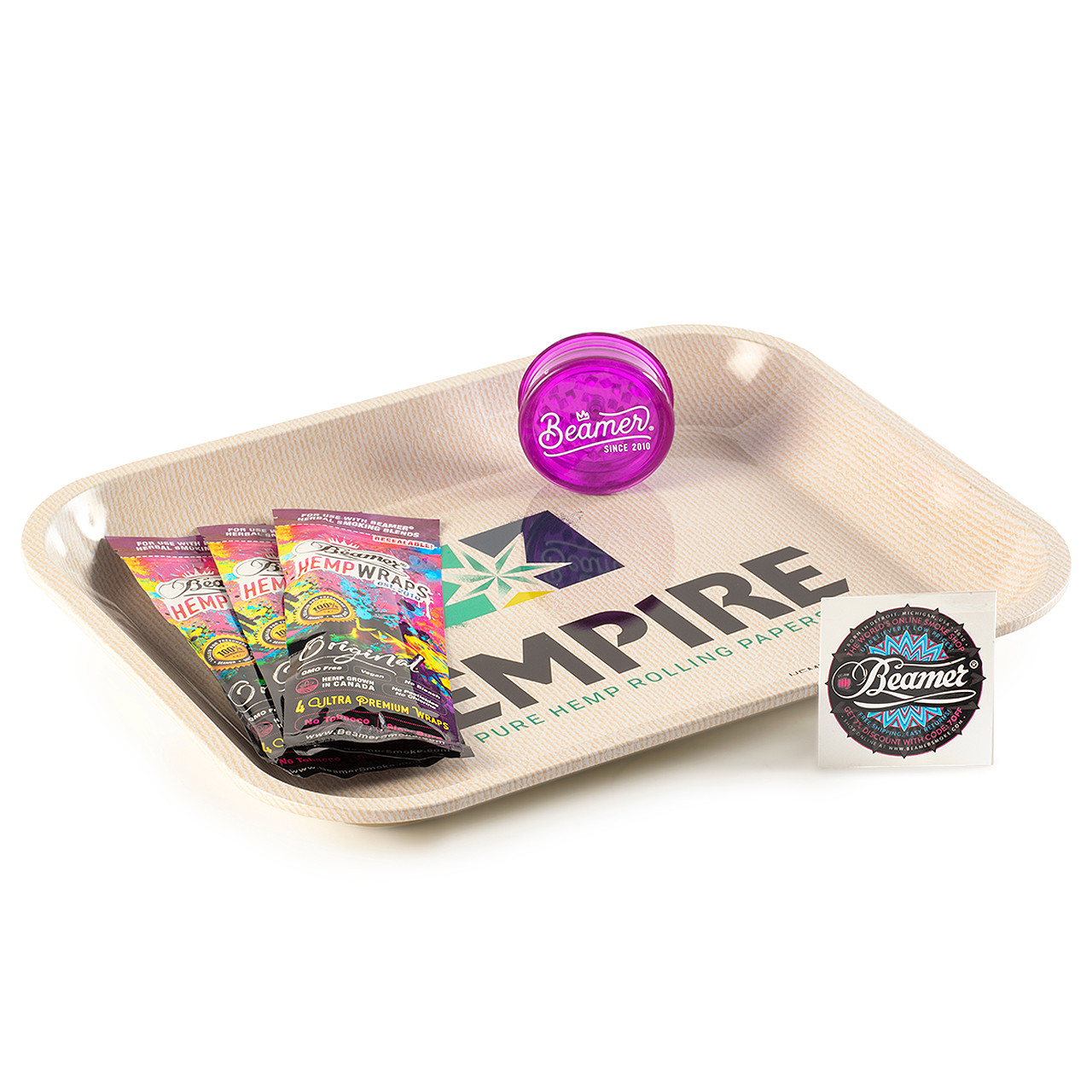 5 Item Bundle Hempire 14 X 11 Metal Rolling Tray 3 Packs Of Beamer Hemp Wraps Beamer 3 Piece 63mm Acrylic Grinder Beamer Smoke